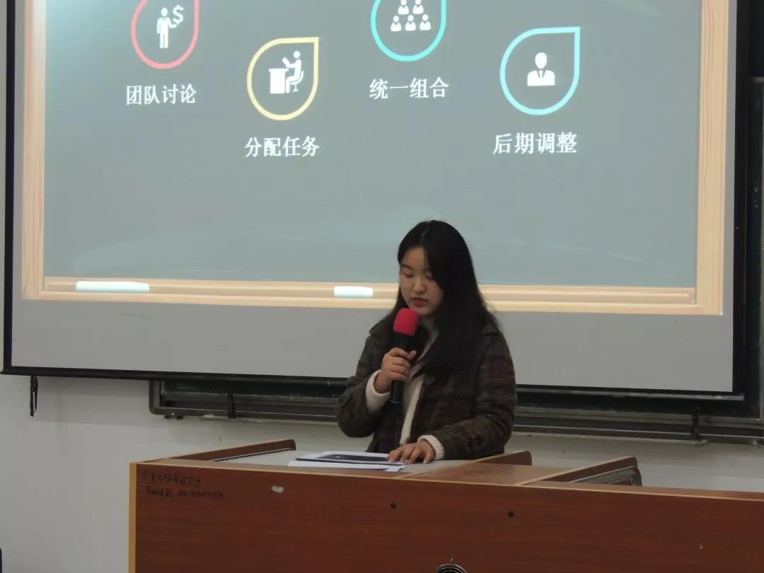 首先上场的队伍是来自中澳班的“你的月亮我的心”。与销售产品紧紧契合的团队名使在场的评审眼前一亮,简洁明了的PPT上展示着他们稳居第一的销售额,条理清晰的发言体现着他们团队的自信从容。富有凝聚力的团队以及勇于抓住机会的营销策略都为他们的成功奠定了基础。