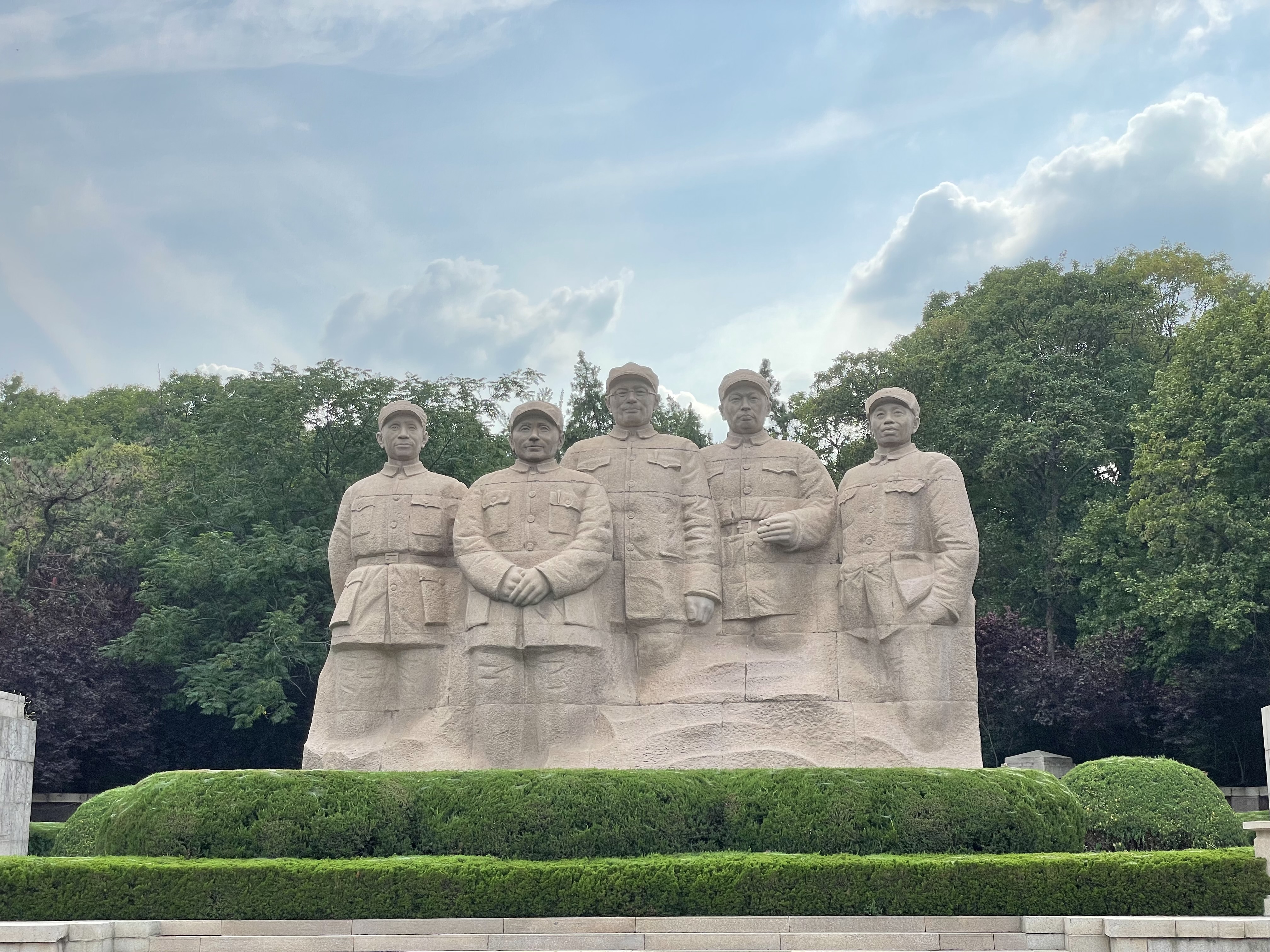 从纪念馆出来,心情久久难以平静。来到刘伯承、陈毅、邓小平、粟裕和谭震林五位将军的雕像面前,我深深了一鞠躬,脑海里浮现出他们率领人民军队英勇抗战的情景。虽然是小米加步枪对飞机加大炮,但人民解放军却以60万歼灭国民党军队80万人。