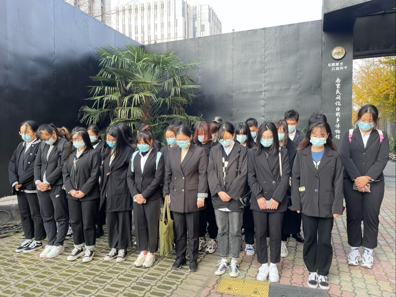 2021年11月20日上午,32名同学身着黑色正装集合,怀着崇敬的心情来到了南京民间抗日战争博物馆。