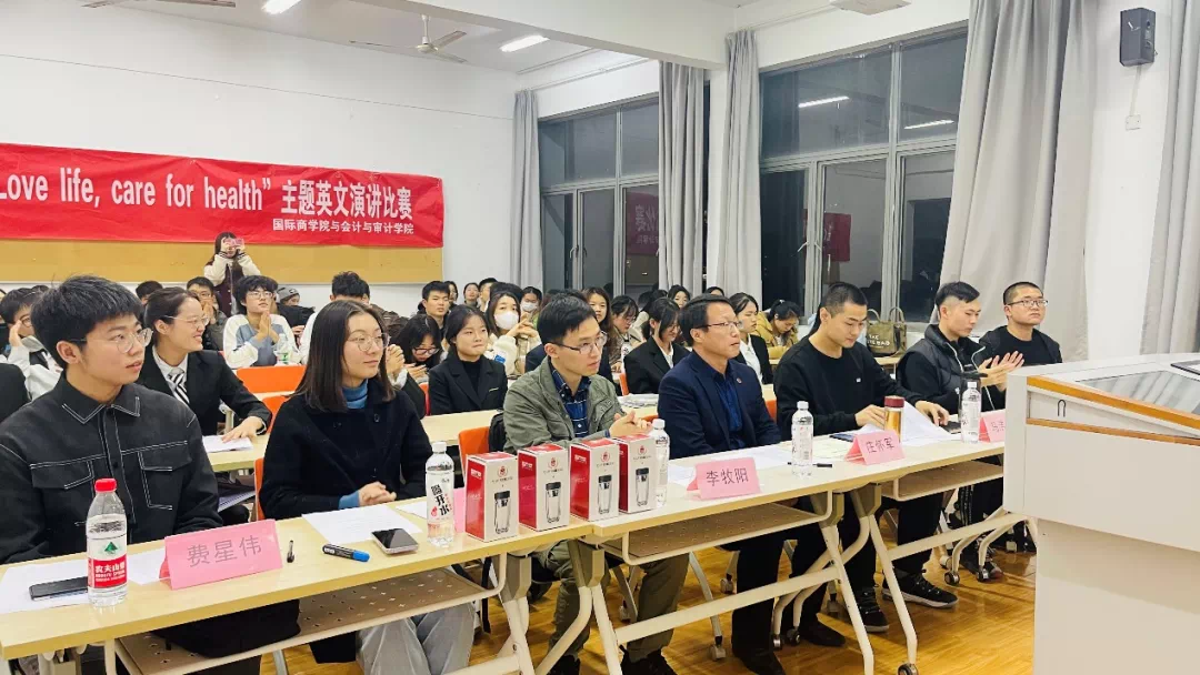 本次比赛主题为“Love life, care for health ”,由国际商学院的老师以及部分学生代表担任评委。本次演讲比赛同学们都积极参与,通过层层选拔,共有10名选手进入了决赛。