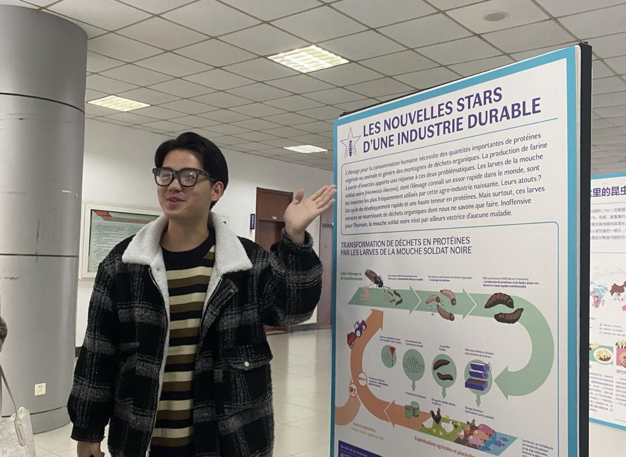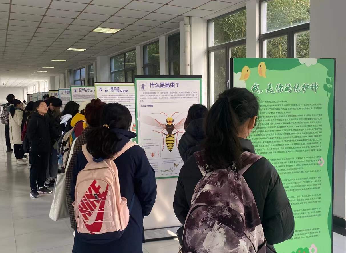 展览过程中,同学们当起了小解说员,在这期间,他们搜集了大量资料,还专门学习了一些简单的法文。活动现场他们的讲解绘声绘色,引人注目,同学们专注地倾听,情不自禁地被带入其中,仿佛自己置身于森林,聆听着昆虫的心声。
