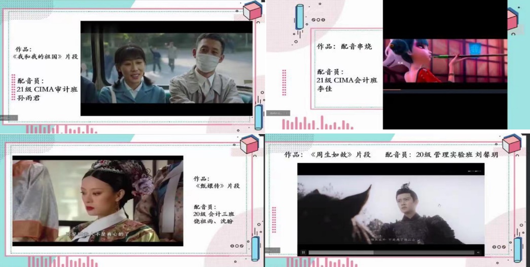 此次配音大赛有幸邀请到了庄怀军、马浩杰老师和国际商学院学生会分团委主席团担任评委,很多同学积极报名参与其中,欣赏参赛者们声情并茂的配音视频。
