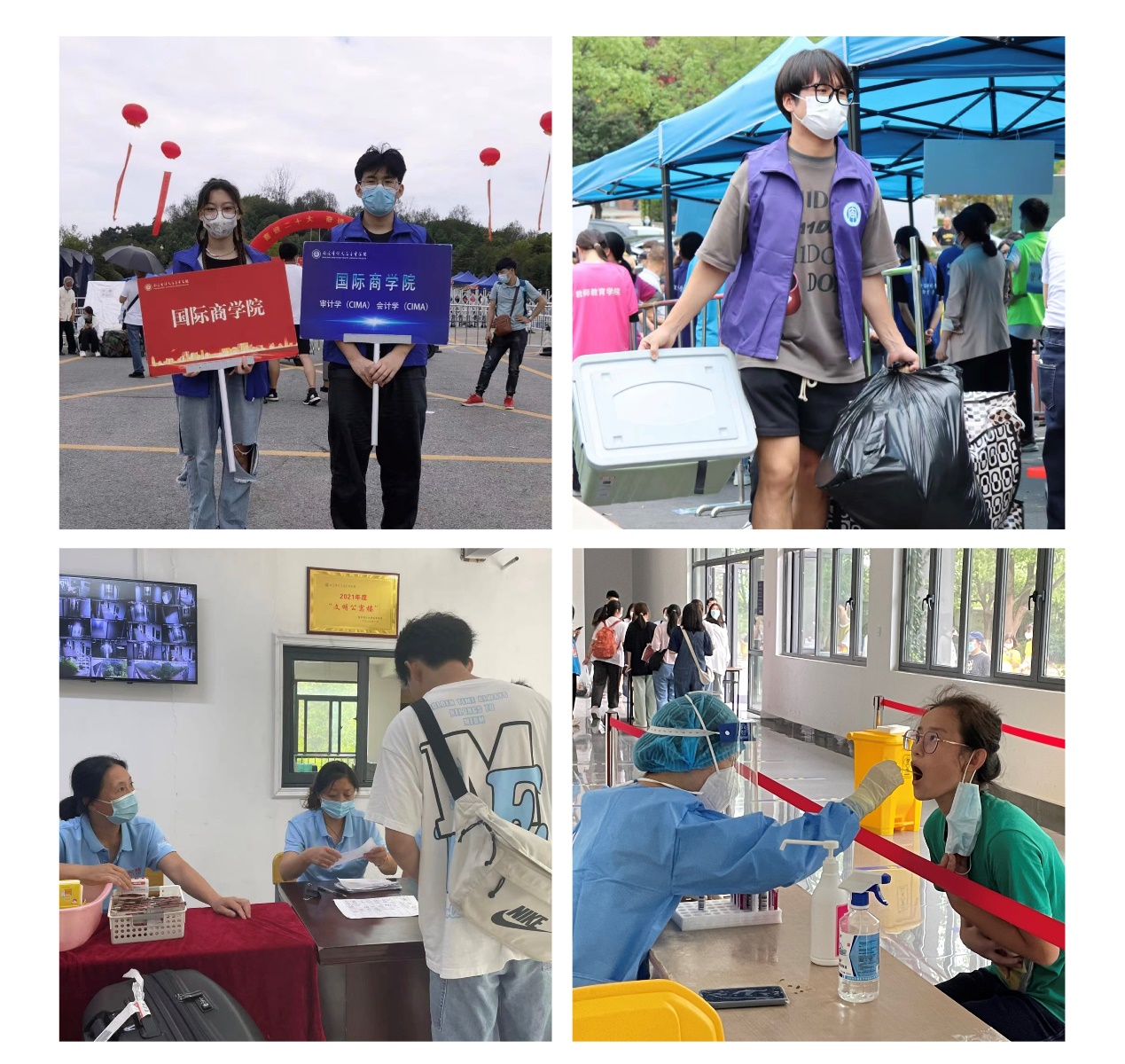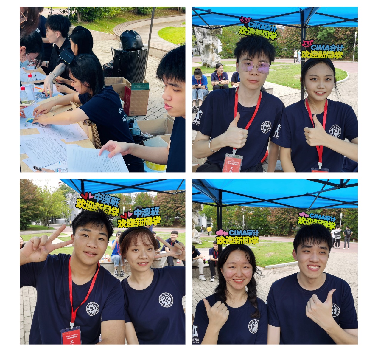 迎新工作如火如荼,到处都是忙碌的身影。新生一进学校,迎接他们的是满怀热情的学长学姐们,国商院的志愿者们都穿上了统一的服装,上面贴有国际商学院的大标签,亮眼且醒目。学长学姐们给不厌其烦地回答着新生提出的各种问题,一路谈笑风生,新生细声地叫着“学长学姐”,老生们也开心地介绍这介绍那。人头攒动,秩序井然。北门口“欢迎新同学”的红色背景墙都在向新生们致以最亲切的问候:“欢迎你,新金审人!”