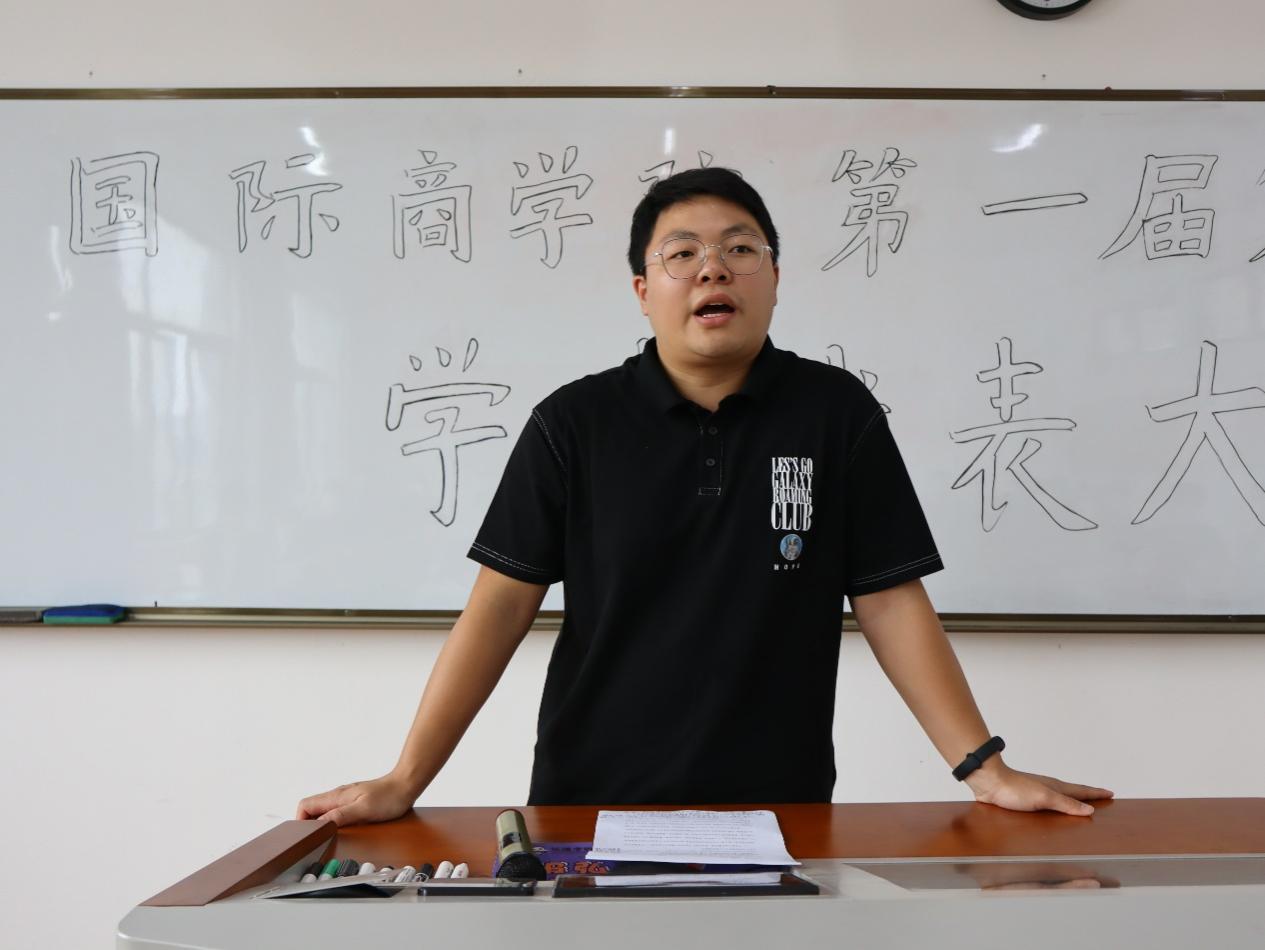 我院有幸邀请到校团委老师戴其斌、国际商学院党总支书记庄怀军、国际商学院党总支副书记张驰、国际商学院分团委书记马浩杰莅临本次大会。