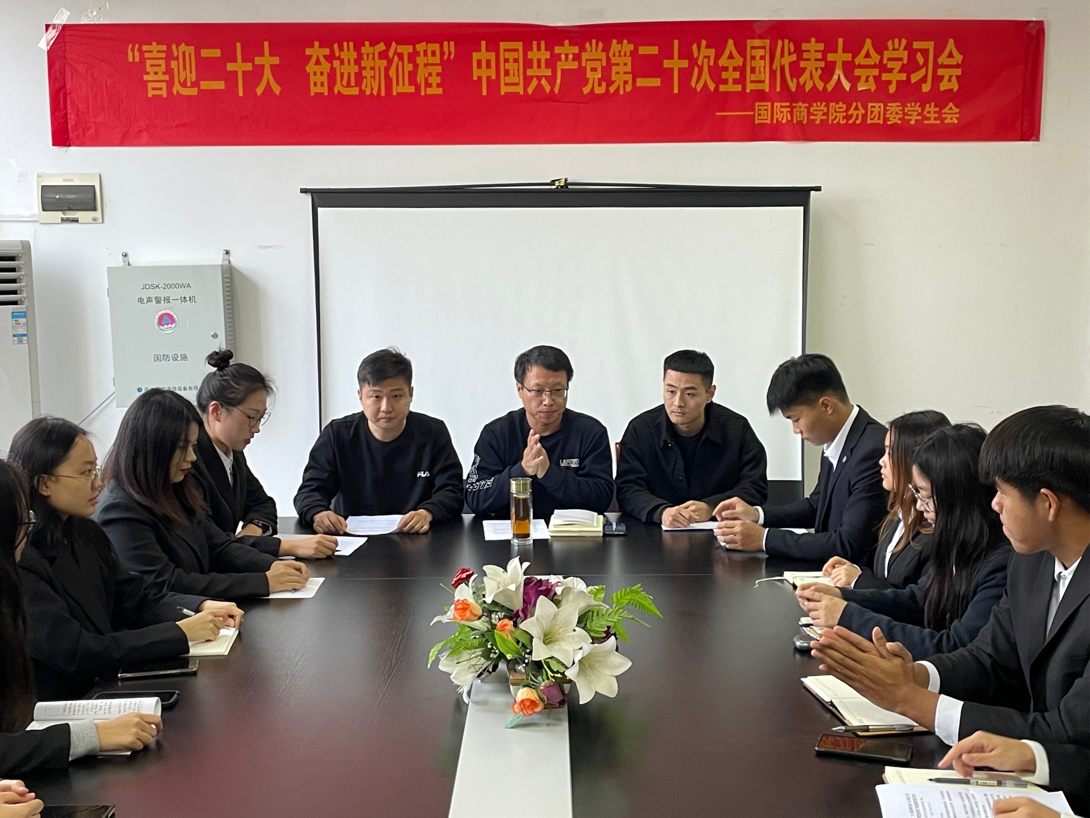 为深入学习贯彻党的二十大精神,深化共识、凝聚力量,勇毅前行、踔厉奋发。11月15日下午,国际商学院庄怀军、张驰、马浩杰三位老师,和国际商学院分团委学生会全体干部、学生代表于b东505会议室开展二十大主题学习讨论会。