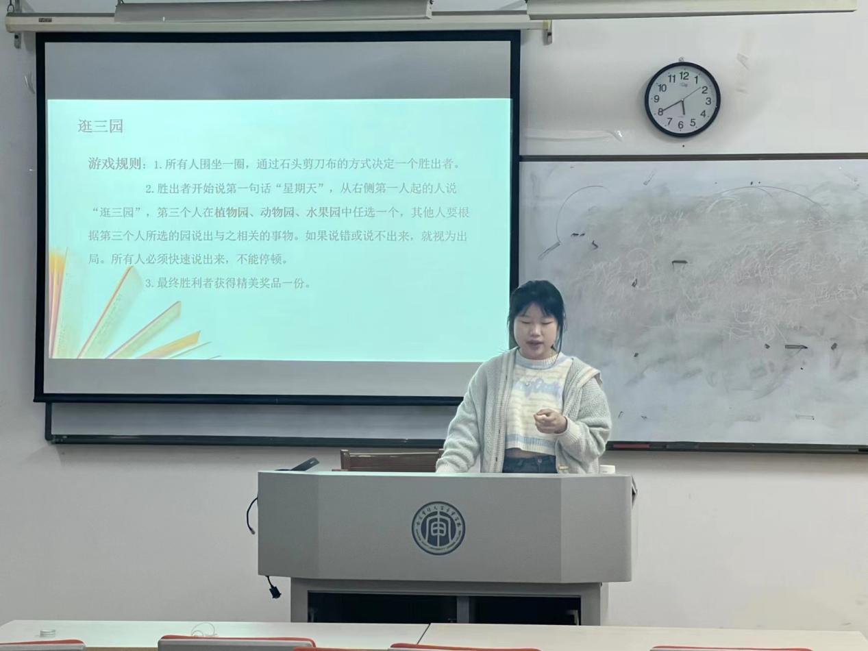 人间草木,四方食事,人间至味是清欢。国际商学院辅导员段天彤老师为同学们分享了汪曾祺先生的食物之趣。她介绍到,难以下咽的苦瓜,经过大厨的翻炒调味,才能变得爽口顺滑。当我们在繁忙的生活中找到一种属于自己的节奏时,我们也就拥有了生活的松弛感,而松弛感正是我们生活中的保鲜剂。她鼓励同学们要热爱生活,感受生活中的美。