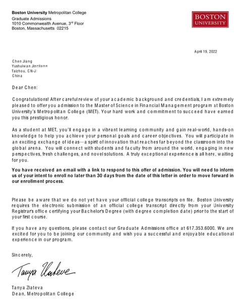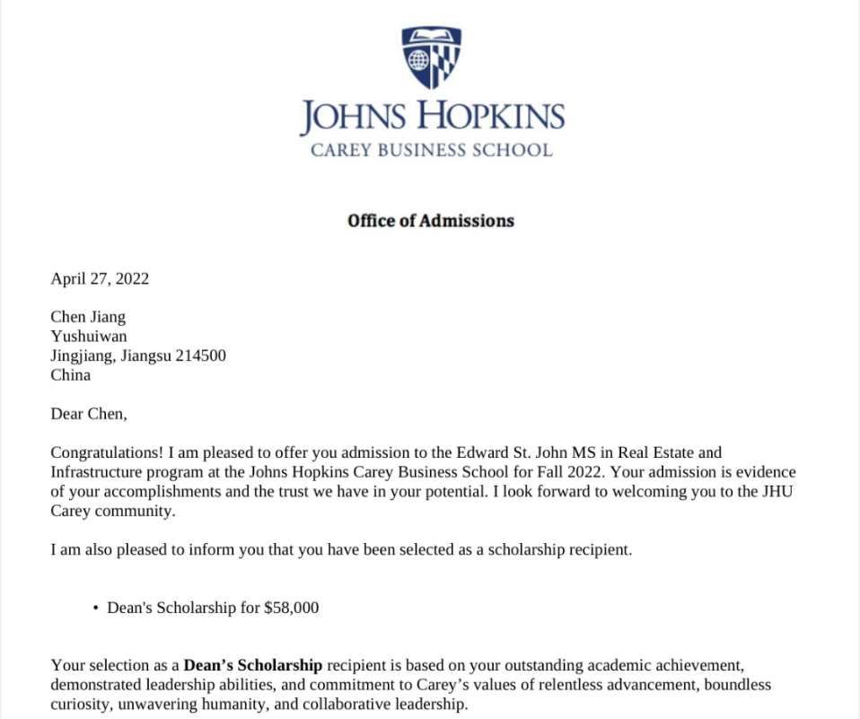 四年来,坚定的目标让她的前路不迷茫,她把更多时间放到磨砺自己身上,最终研究生就读于美国约翰霍普金斯大学,此外她还收获了圣路易斯华盛顿大学、波士顿大学、UIUC、澳洲墨尔本大学、悉尼大学、英国诺丁汉大学的offer。