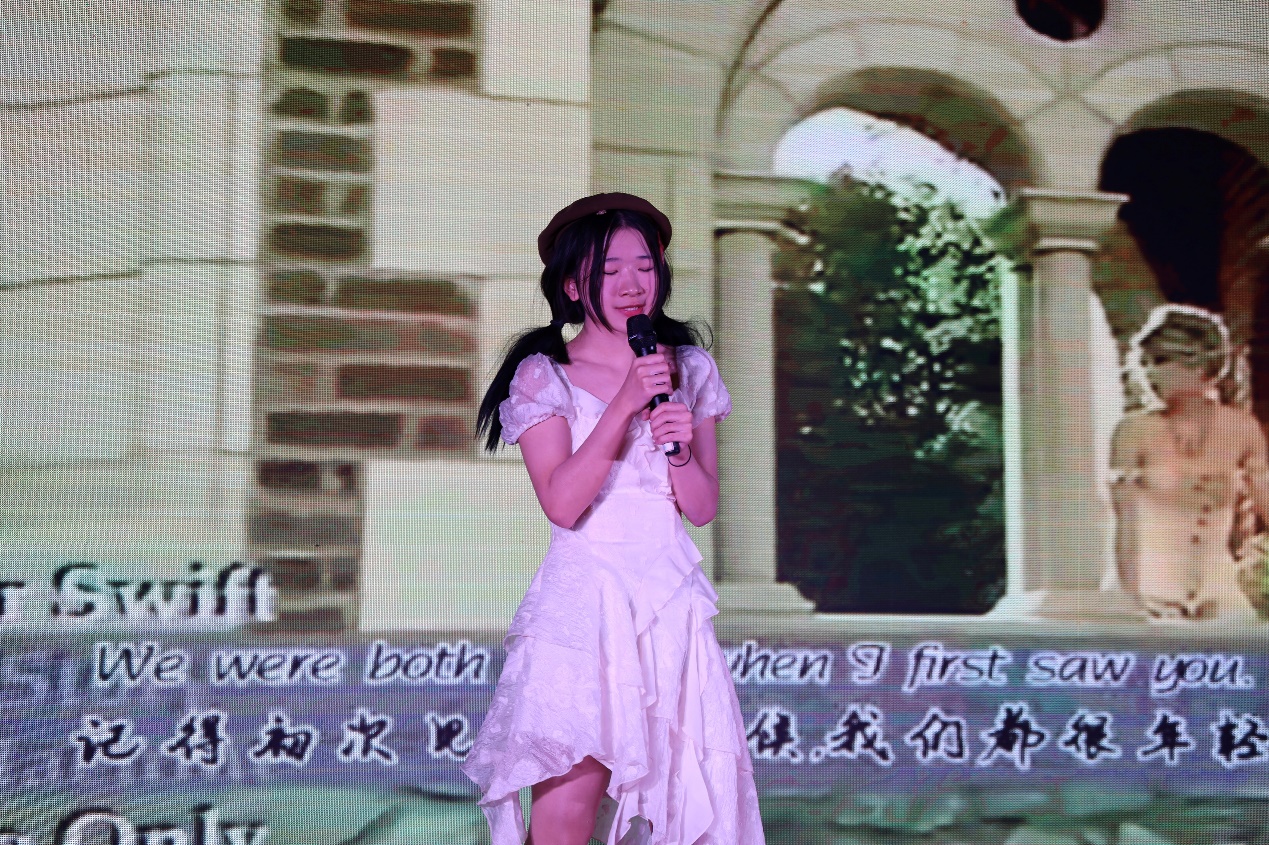 比赛正式开始后,参赛选手依次上台,以英语语言为载体,进行歌曲才艺展示,选手们所选择的曲目充满“爱与坚持”的正能量,如《Love story》,《Someone you loved》,《Try》,《Dream it possible》等。选手们借助这个舞台施展才华,张扬个性,锻炼自我,给台下的观众们展现了作为大学生的独特魅力。