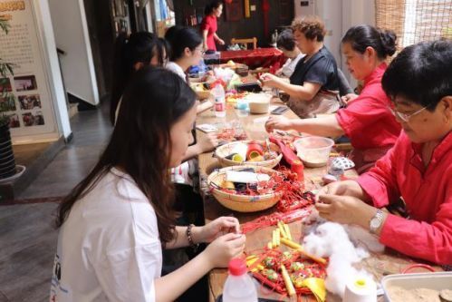 从党员会议室出来后,讲解员继续带我们走进马庄香包文化大院,现场体验香包制作的精美工艺,亲手参与香包制作。历史悠久的马庄香包是国家级非物质文化遗产系,纯手工制作,精配中药。