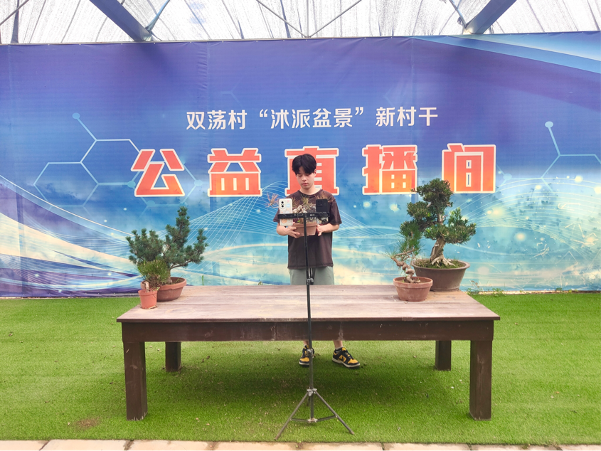 队员们来到双荡村村委会,通过与村干部和村民的访谈,了解当地的天然生态优势与产业基础状况以及当地乡村振兴的具体做法。除了门店陈列、促销活动、个人销售等传统形式外,双荡村还借助电商平台,以直播带货的形式进行线上的花木销售。