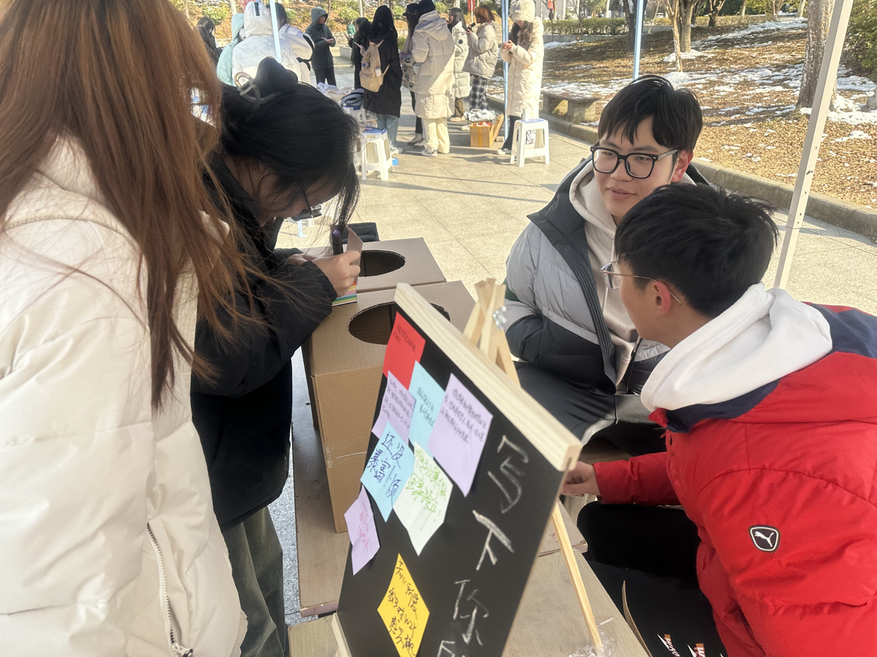 为促进学生身心健康。12月20日中午,国际商学院在石头广场组织了一场别开生面的情绪交换活动。