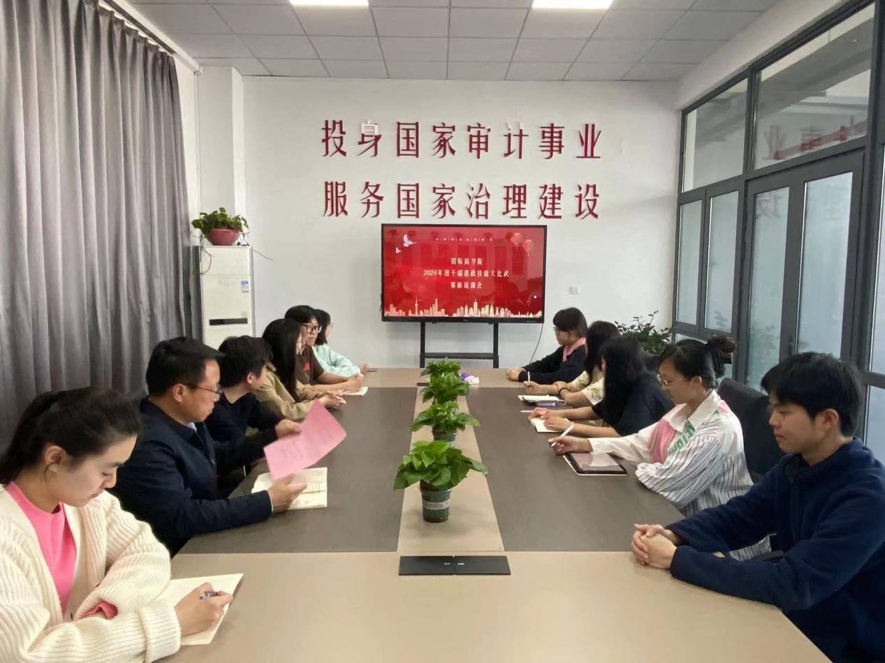 为争取在思政技能大比武中取得佳绩,4月9日下午,国际商学院于C西504会议室召开赛前培训会,本次会议有总支书记庄怀军,副书记张驰和分团委学生会书记马浩杰以及国际商学院分团委学生会成员共同参与。