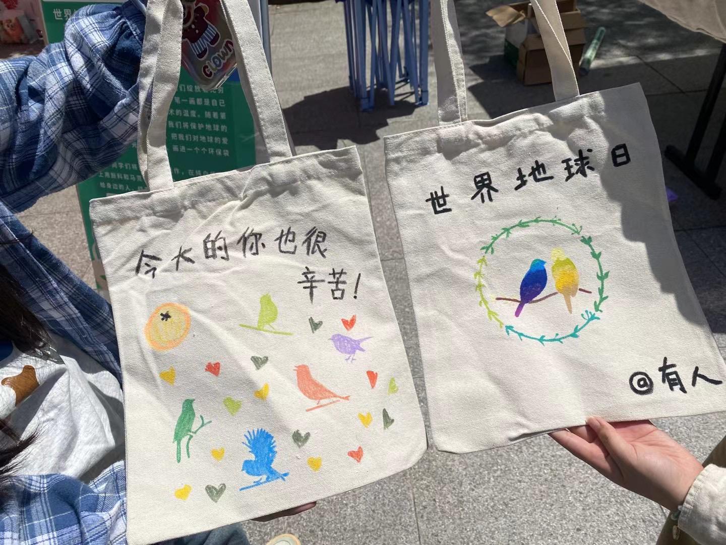 本次活动不仅是对地球日的庆祝,更是对环保意识的一次深刻觉醒。同学们在纯白的帆布袋上绘制各种图案和信息,以此表达他们对于环保的热情和对地球的责任感。每一个手绘图案,都是对地球生命力的赞歌,也是同学们情感的独特表达。