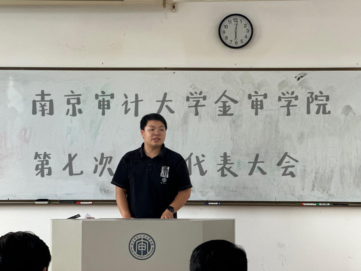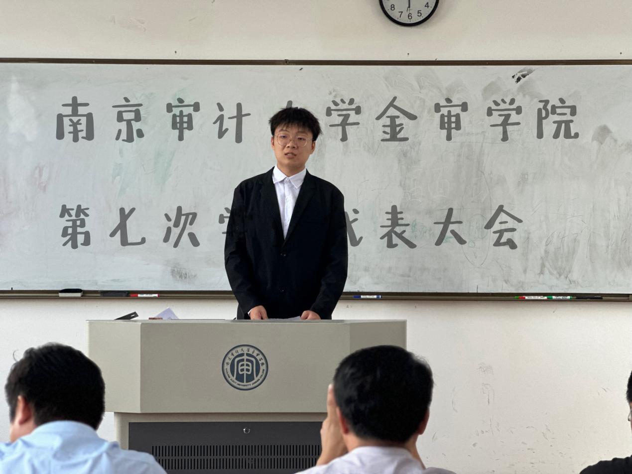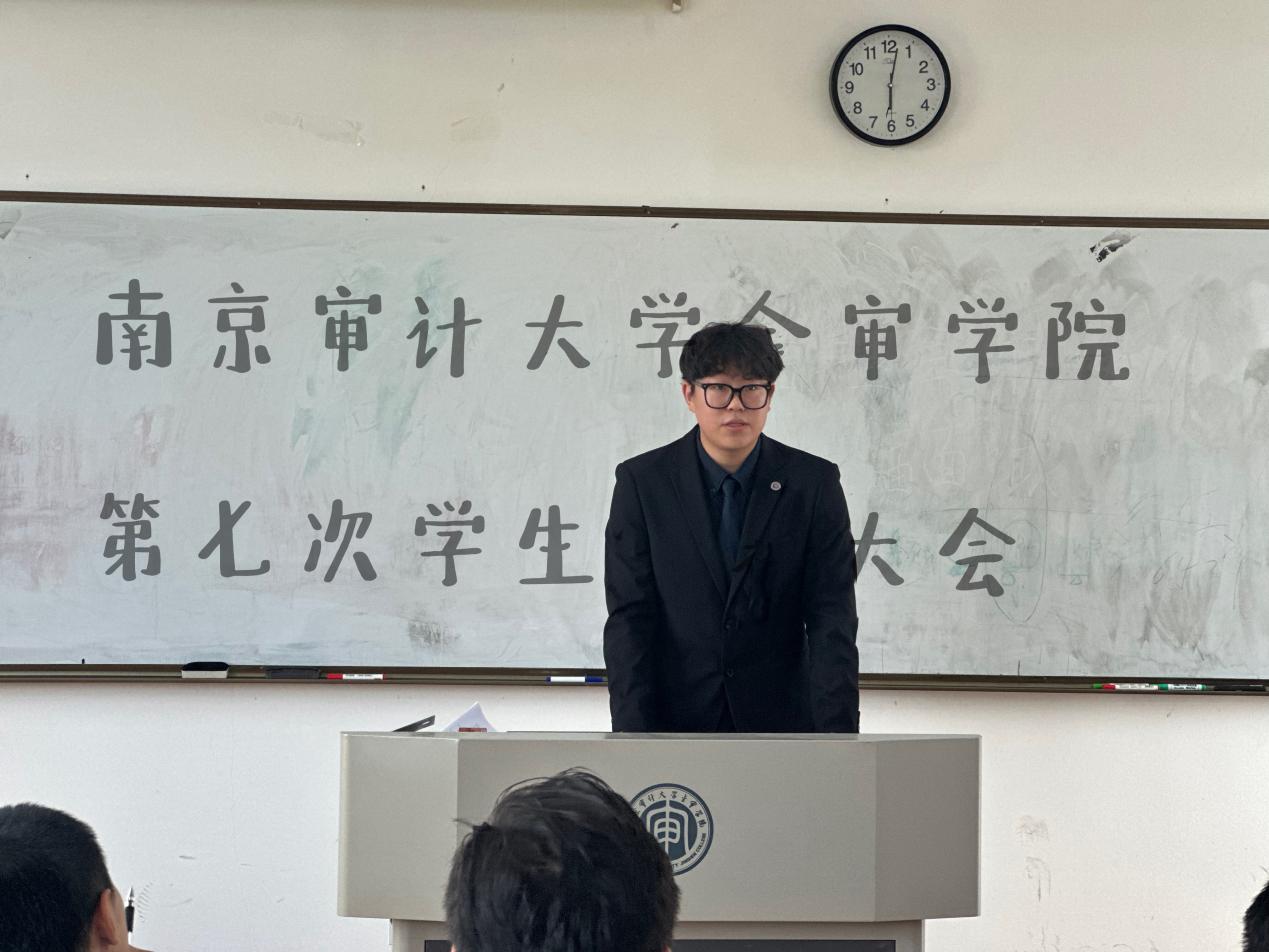 主席团代表凌世杰同学对2023-2024年度工作进行汇报。他提出要想同学们之所想,急同学们之所急,尽可能为同学们解决实际困难,共同为团学发展贡献力量。