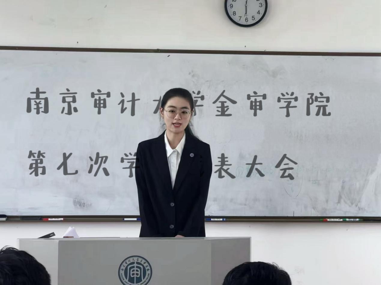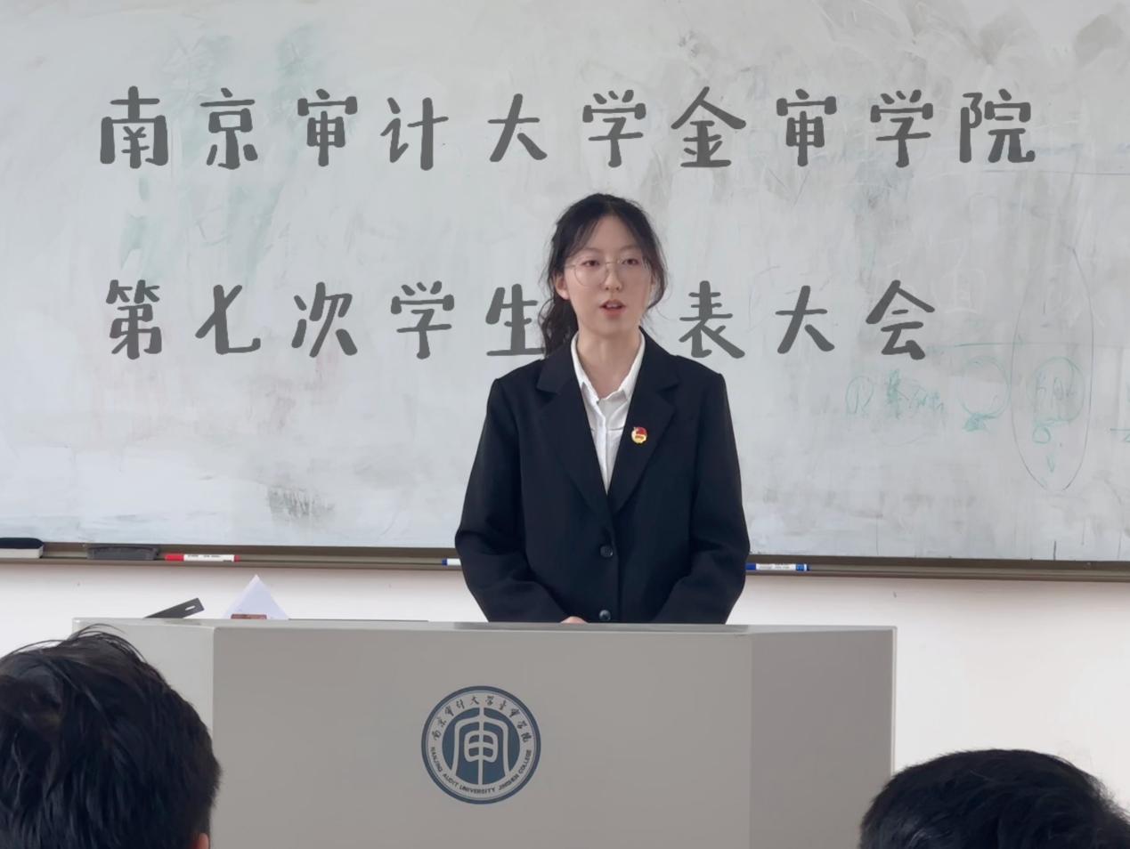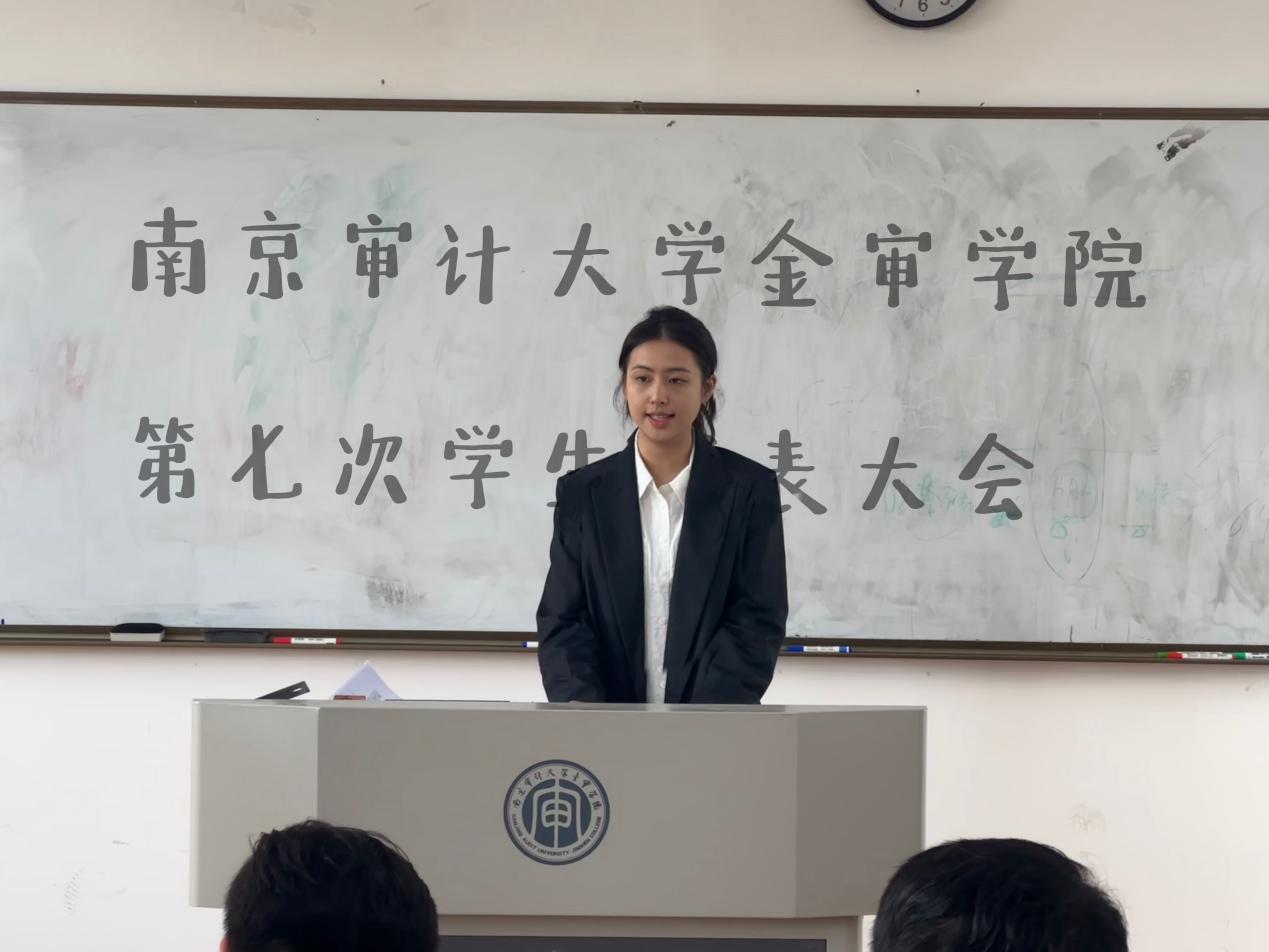 主席团代表凌世杰同学对2023-2024年度工作进行汇报。他提出要想同学们之所想,急同学们之所急,尽可能为同学们解决实际困难,共同为团学发展贡献力量。