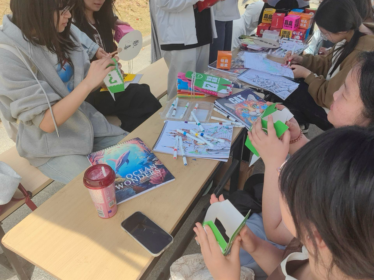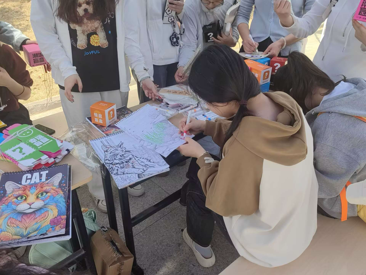 在活动的“绘画疗愈”环节,参与者自由选取曼陀罗图纸,以色彩释放情绪。没有规则与评判,只有笔尖与纸张的沙沙声相伴。许多同学沉浸其中,勾勒出内心的波澜或宁静。“画画时好像忘记了烦恼,只觉得特别放松。”一位同学分享道。