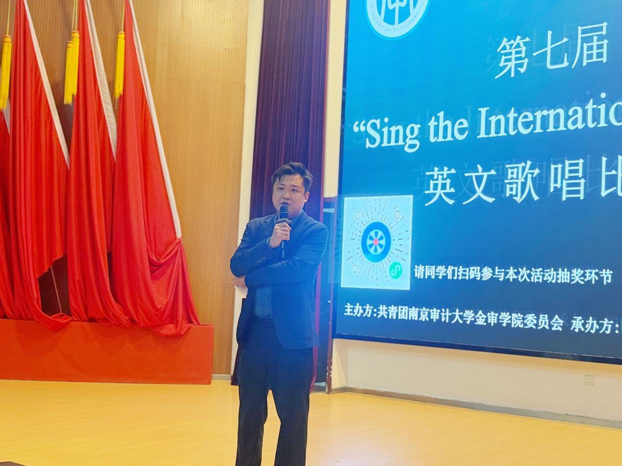 比赛正式开始前,由张驰老师致辞。他指出:英文歌唱比赛是提升学生综合素养的重要平台——不仅能夯实英语听说能力,更能够淬炼舞台自信,助力学子在语言能力储备中厚植竞争优势。