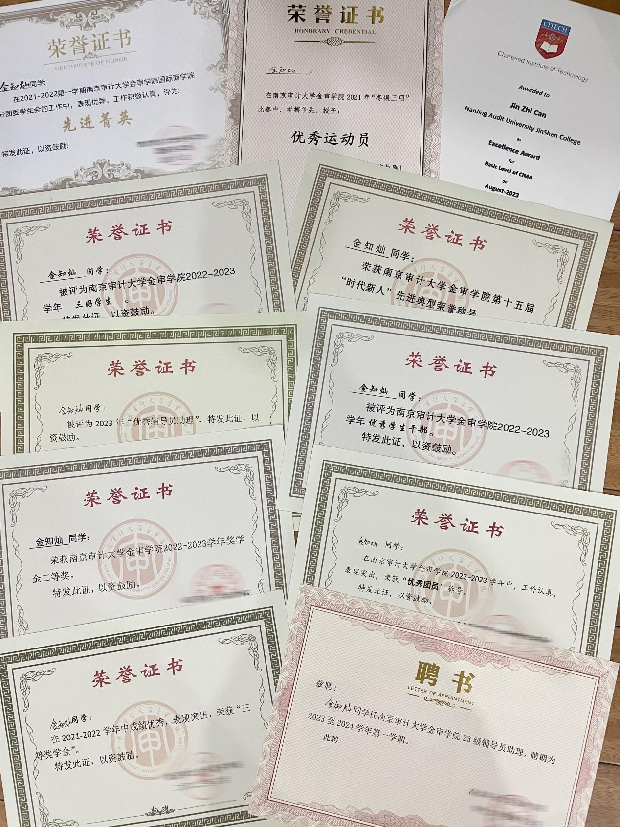 金知灿,来自江苏南京,她一路披荆斩棘,即将奔赴南半球逐梦。大学里,她曾任职21cima审计班副班长、williamhill英国学生会轮值主席、23级辅导员助理数职,游刃有余。校级奖学金、三好学生、优秀学生干部等荣誉如累累硕果,英语四六级、雅思6.5分、CIMA BA2证书在手,妥妥“六边形全能学霸”!