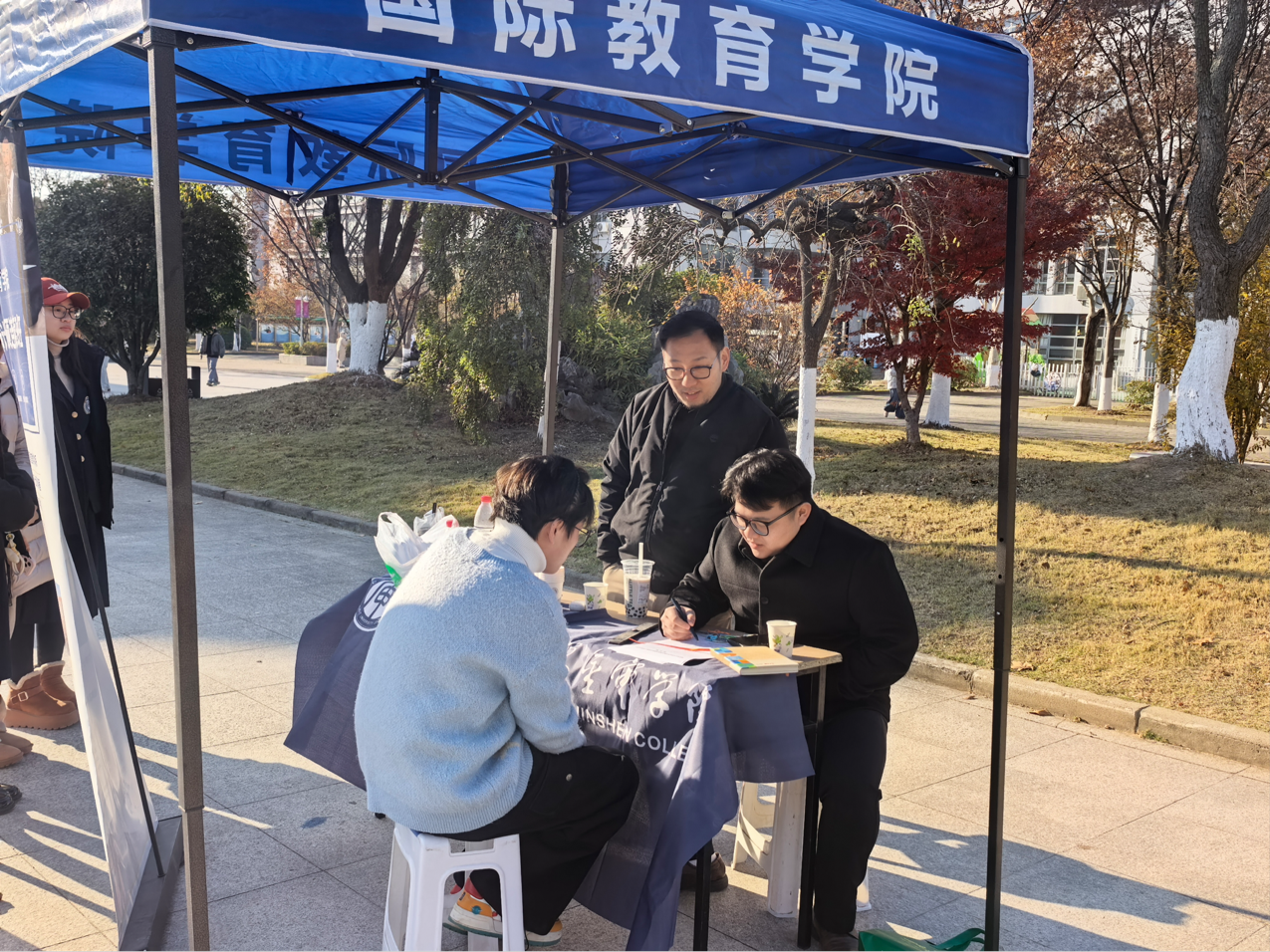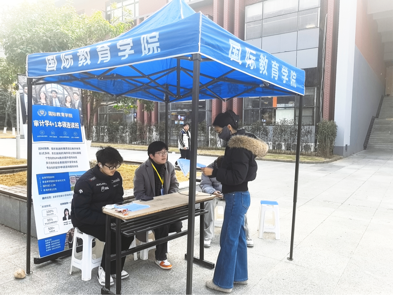 为进一步推动中外教育对接,williamhill英国筹备的国际升学项目咨询展在石头广场开展。现场,负责咨询的老师与同学围绕热门专业详情、申请时间规划等内容,耐心解答同学们的疑问。