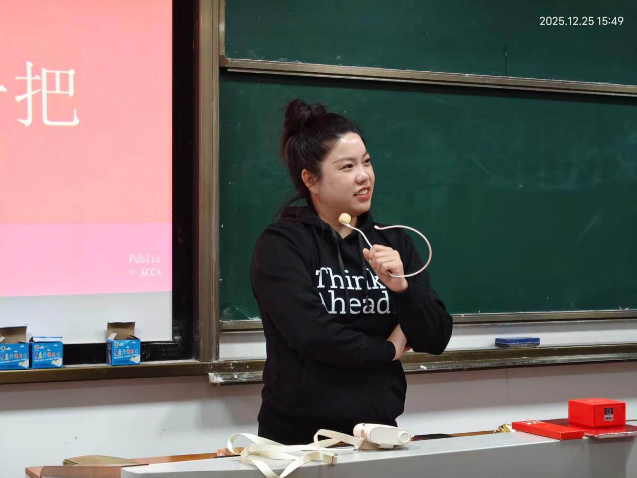 2025年12月25日,一场兼具思想思辨与专业赋能的ACCA专题讲座在C南201教室开展。本次讲座特邀ACCA华东区教育拓展主任 Nancy 陈滟女士担任主讲人,吸引了众多对国际财会领域感兴趣的学子到场参与,讲座以精彩辩论开篇,随后深入解读ACCA知识,为学子带来双重启发。
